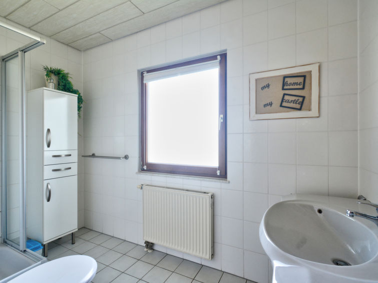 "Dorf 4/ Haus 27", huis 6-kamers 102 m2 op 2 verdiepingen, op de begane grond. Gedeeltelijk gerenoveerd in 2023, smaakvol en gezellig ingericht: woon-/eetkamer 30 m2 met Sat-TV (Flatscreen TV), CD-speler, stereo-installatie, DVD en DVD´s beschikbaar. Uitgang naar het terras, naar de zitplaats in de tuin. 1 kamer 14 m2 met 1 2-pers bed (180 cm, lengte 200 cm). Open keuken 7 m2 (oven, afwasmachine, 4 keramische glas kookplaten, magnetron, elektrische koffiemachine). Douche/WC. Bovenverdieping: (wenteltrap), 2 kamers met afgeschuinde daken, elke kamer heeft 1 bed (90 cm, lengte 200 cm). Uitgang naar het balkon. 2 kamers met afgeschuinde daken, elke kamer heeft 1 2-pers bed (180 cm, lengte 200 cm). Uitgang naar het balkon. Douche/WC. Gas-verwarming, boiler (100 liter). Klein balkon 5 m2, groot terras 20 m2 gedeeltelijk overdekt, zithoek in de tuin, gazon 200 m2. Terrasmeubelen, balkonmeubilair, barbecue. Ter beschikking: wasmachine, kinderstoel, haardroger. Internet (Internet (WiFi), gratis). Rookvrij huis. Maximaal 3 huisdieren/honden toegestaan. Rookmelders, brandblusser.