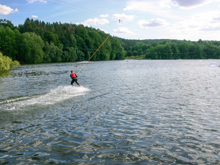 Vakantiedorp "Seepark Kirchheim". Buiten de plaats, 4 km van het centrum van Kirchheim, rustige, zonnige ligging tegen een helling, direct aan het meer, te midden van groen. Openbare parkeerplaatsen in de straat. Winkel 4 km, supermarkt 4 km, winkelcentrum 4 km, bakkerij 4 km, café 400 m, bushalte 400 m, treinstation "Bad Hersfeld" 15 km, openluchtzwembad 4 km, thermaalbad 15 km. Golfterrein (18 holes) 4 km, tennis 10 km, midgetgolf 15 km, wandelroutes 300 m vanaf het huis. Bekende meren kunnen gemakkelijk worden bereikt: Stausee 500 m. Auto noodzakelijk. De eigenaar accepteert geen jeugdgroepen. Het Seepark is opgedeeld in vier "dorpen" met in totaal 139 vakantiewoningen, die rond het meer zijn gegroepeerd (10 hectare water, zwemmen, waterskiën, zonneweide). De route rond het meer is ideaal om te wandelen en te joggen.