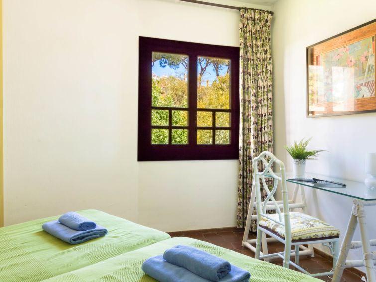 Puerto Cabopino: Groot, comfortabel flatgebouw "Cabopino". Buiten de plaats, 14 km van het centrum van Marbella, 50 m van zee, 100 m van het strand. Voor medegebruik: terrein, tuin met gazon, openluchtzwembad (80 - 240 cm diepte, seizoensgebonden beschikbaarheid: 01.Mei. - 30.Okt.). Kinderzwembad, buitendouche, kinderspeelplaats. In het huis: lift. Gemeenschappelijke garage. Supermarkt 1 km, winkelcentrum 1 km, restaurant 50 m, bushalte 200 m, zandstrand "Playa de Cabopino" 100 m. Golfterrein (18 holes) 2.5 km, manege 5 km.