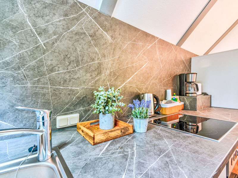 Vakantiedorp "Seepark Kirchheim". Buiten de plaats, 4 km van het centrum van Kirchheim, rustige, zonnige ligging tegen een helling, direct aan het meer, te midden van groen. Openbare parkeerplaatsen in de straat. Winkel 4 km, supermarkt 4 km, winkelcentrum 4 km, bakkerij 4 km, café 400 m, bushalte 400 m, treinstation "Bad Hersfeld" 15 km, openluchtzwembad 4 km, thermaalbad 15 km. Golfterrein (18 holes) 4 km, tennis 10 km, midgetgolf 15 km, wandelroutes 300 m vanaf het huis. Bekende meren kunnen gemakkelijk worden bereikt: Stausee 500 m. Auto noodzakelijk. De eigenaar accepteert geen jeugdgroepen. Het Seepark is opgedeeld in vier "dorpen" met in totaal 139 vakantiewoningen, die rond het meer zijn gegroepeerd (10 hectare water, zwemmen, waterskiën, zonneweide). De route rond het meer is ideaal om te wandelen en te joggen.