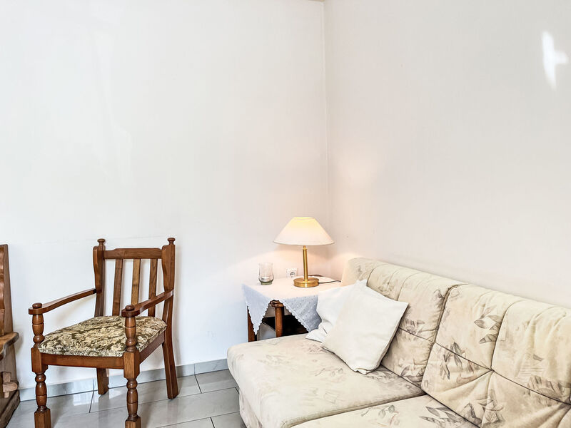 Huis 2-kamers 80 m2 op 2 verdiepingen. Eetkamer met Kabel-TV (Flatscreen TV). 1 kamer met 1 2-pers bed (2 x 90 cm, lengte 200 cm), douche/WC. Open keuken (4-pits kookplaat, oven, broodrooster, magnetron, elektrische koffiemachine). Douche, aparte WC. Bovenverdieping: open woon-/slaapkamer met afgeschuinde daken met 2 bedden (90 cm, lengte 200 cm), 1 2-pers divanbed en Kabel-TV. Uitgang naar het terras. Verwarming. Terras 5 m2. Terrasmeubelen. Ter beschikking: wasmachine, droger, strijkijzer. Internet (Internet (WiFi), gratis). Niet rokers woning. Maximaal 1 huisdier/hond toegestaan. Rookmelders.
