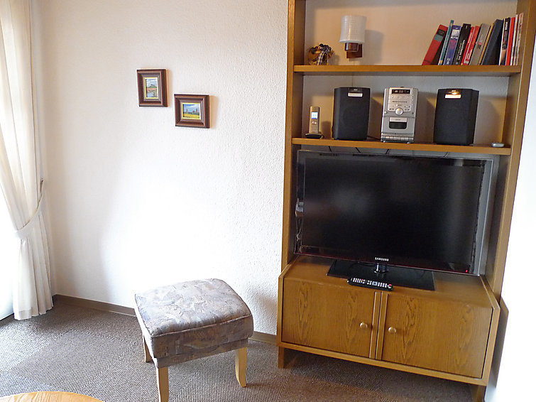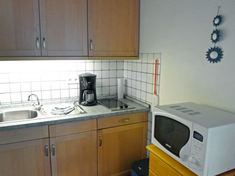 Appartement 2-kamers 35 m2 op de 1e verdieping. Gezellig ingericht: woonkamer 9 m2 met Digitale TV, Flatscreen TV en stereo-installatie. Doorgangskamer 4 m2 met 2 bedden (90 cm, lengte 180 cm). Kleine keuken 14 m2 (2-pits kookplaat, broodrooster, waterkoker, magnetron, elektrische koffiemachine) met eettafel. Douche/WC. Balkon. Balkonmeubilair. Ter beschikking: telefoon (extra), kinderstoel (extra), haardroger. Koelkast zonder vriesvak, niet rokers woning. Rookmelders.