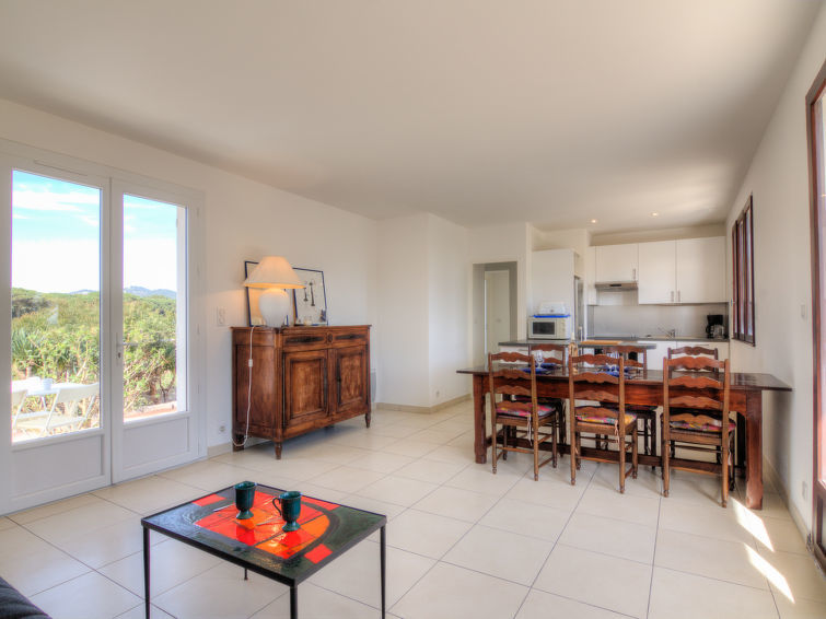 Villa 3-kamers 75 m2. Comfortabel en mooi ingericht: woon-/eetkamer met TV (Flatscreen TV). 1 kamer met 1 2-pers bed (140 cm, lengte 190 cm). 1 kamer met 2 bedden (90 cm, lengte 190 cm). Uitgang naar de tuin. Keuken (4-pits kookplaat, oven, afwasmachine, magnetron, diepvriezer, elektrische koffiemachine). Douche, aparte WC. Elektrische verwarming. Terras 20 m2. Terrasmeubelen, ligstoelen. Ter beschikking: wasmachine, strijkijzer. Internet (WiFi, gratis). Parkeerplaats (omheind). 1 klein huisdier/hond toegestaan. TV alleen FR. Rookmelders. Aanbod door een particulier volgens art. 155, IV van CGI.