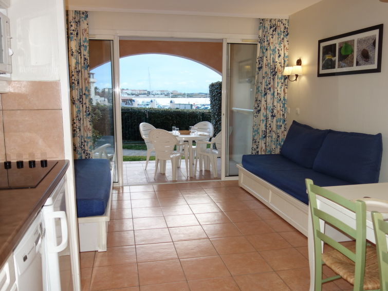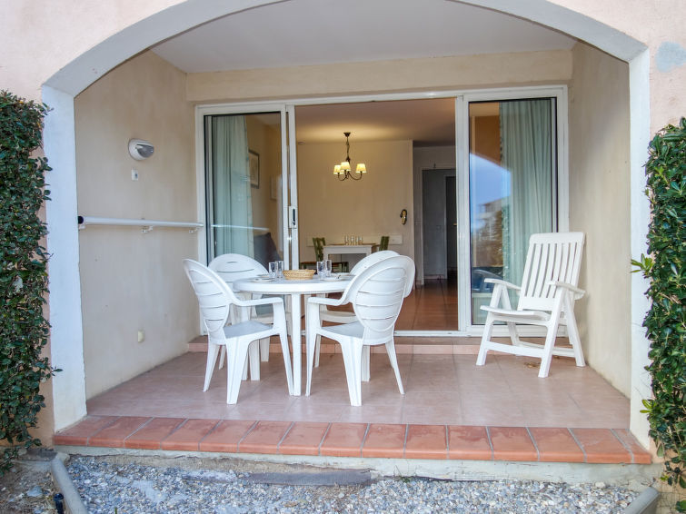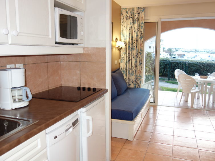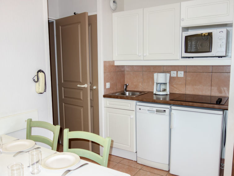 Appartement 2-kamers 32 m2, op de begane grond. Doelmatig en mooi ingericht: woon-/eetkamer met 2 bedden (80 cm, lengte 190 cm), TV (Flatscreen TV). Uitgang naar het terras. 1 kamer met 1 2-pers bed (1 x 140 cm, lengte 190 cm). Kookhoek (afwasmachine, 4 keramische glas kookplaten, broodrooster, waterkoker, magnetron, elektrische koffiemachine). Badkamer, aparte WC. Elektrische verwarming. Terras 8 m2, overdekt, op het zuidwesten gelegen, kleine zithoek in de tuin 4 m2. Terrasmeubelen. Uitzicht op zee en het zwembad. Ter beschikking: wasmachine. Internet (Internet (WiFi), extra). Parkeerplaats nr. 428 (Niveau P1) (overdekt), hoogte 190 cm, breedte 240 cm. Maximaal 1 huisdier/hond toegestaan. TV alleen FR. Rookmelders.