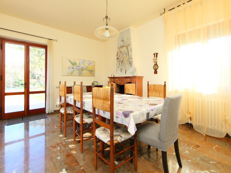 Huis 8-kamers 220 m2 op 2 verdiepingen. Comfortabel en gezellig ingericht: woon-/eetkamer met Sat-TV. Uitgang naar de veranda. 1 groot 2-pers. kamer. 1 kamer met 2 bedden. Kleine keuken (4-pits kookplaat, oven, afwasmachine, broodrooster, magnetron, diepvriezer, elektrische koffiemachine). Douche/bidet/WC. Bovenverdieping: woonkamer met open haard, bibliotheek en Sat-TV. Uitgang naar het terras. Eetkamer met open haard. Uitgang naar de tuin, naar het terras. 1 2-pers. kamer. Uitgang naar het balkon. 1 kamer met 2 bedden. Uitgang naar het balkon. 1 kamer met 2 bedden. Keuken (4-pits kookplaat, oven, afwasmachine, magnetron, diepvriezer). Douche/bidet/WC. 2 kleine balkons 5 m2, terras 25 m2, terras 30 m2, ruime zithoek in de tuin 30 m2, tuin 200 m2. Terrasmeubelen, barbecue. Mooi uitzicht in de verte op zee en de bergen. Ter beschikking: wasmachine, strijkijzer, klamboe, kinderstoel, kinderbed tot 2 jaar, haardroger. Internet (WiFi, gratis). Parkeerplaats (omheind, 3 Auto's) bij het huis. Maximaal 1 huisdier/hond toegestaan. Rookmelders, brandblusser. IT046005C2PN98SQQ3