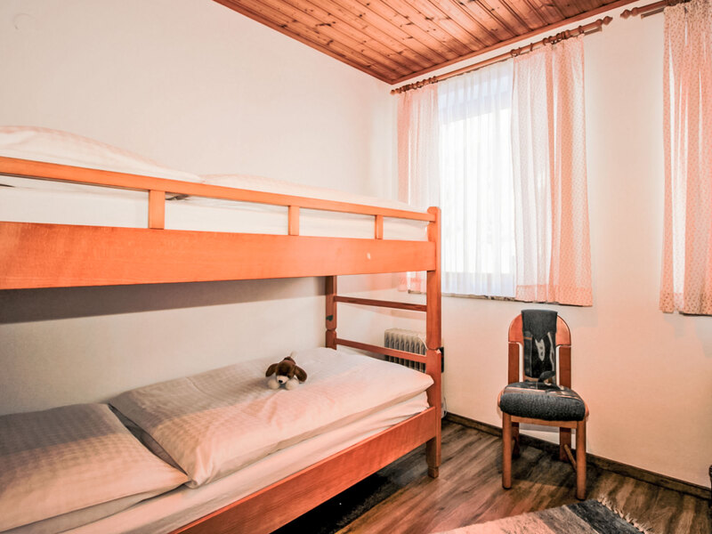 Appartement 3-kamers 65 m2, op de begane grond. Comfortabel en gezellig ingericht: hal. Groot woon-/eetkamer met 1 2-pers divanbed, eethoek en Sat-TV (Flatscreen TV). Uitgang naar het terras. 1 kamer met 1 x 2 stapelbedden. 1 2-pers. kamer. Open keuken (oven, afwasmachine, 4 keramische glas kookplaten, magnetron). Douche/WC. Terras, groot tuin 180 m2. Terrasmeubelen, barbecue. Uitzicht op de bergen en het landschap. Ter beschikking: Internet (WiFi). Parkeerplaats (1 Auto). Geschikt voor families. Niet rokers woning. 1 huisdier/hond toegestaan. 50425-000005-2020