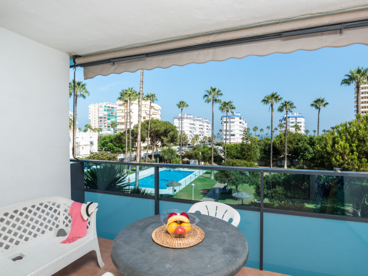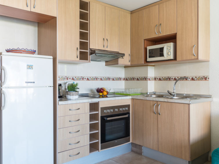 Appartement 3-kamers 65 m2 op de 2e verdieping. Het objekt is geschikt voor 2 volwassenen + 2 kinderen. Eenvoudig en comfortabel ingericht: woon-/eetkamer met Digitale TV, Flatscreen TV, air-conditioning en heteluchtverwarming. Uitgang naar het terras. 1 2-pers. kamer met 2 bedden (90 cm). 1 2-pers. kamer met 1 bed (150 cm). Open keuken (oven, magnetron, elektrische koffiemachine). Douche/WC. Terras. Terrasmeubelen. Uitzicht op het zwembad, de tuin en de oceaan. Ter beschikking: wasmachine. Geschikt voor families. VUT/MA/35731 // Reg. Nr.: ESFCTU0000290350000647260000000000000000VUT/MA/357314