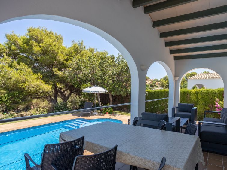 Son Bou: Mooi, comfortabele, luxueuze villa "Villas Finesse Type 1", omgeven door bomen. Aan de rand van de plaats Son Bou, rustige, zonnige ligging op een heuvel, 2 km van zee. Voor alleengebruik: terrein, tuin, openluchtzwembad (4 x 10 m, seizoensgebonden beschikbaarheid: 30.Apr. - 24.Okt.). Buitendouche, patio, terras. In het huis: internetaansluiting, Internet (WiFi), air-conditioning, wasmachine. Parkeerplaats op het terrein. Winkel 2 km, levensmiddelenwinkel 2 km, supermarkt 1 km, restaurant 200 m, bushalte "Son Bou" 450 m, zandstrand 2 km. Golfterrein (18 holes) 20 km, tennis 1.9 km, manege 1 km, kinderspeelplaats 300 m. Auto noodzakelijk. Geschikt voor families, geschikt voor senioren op aanvraag. Het objekt is geschikt voor 6 volwassenen groepen jongeren uitsluitend op aanvraag. Laden en lossen van de baggage is mogelijk bij het huis. Vliegveld 20 km van het huis.